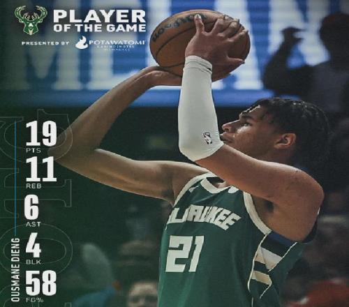 近兩場為雄鹿出戰的比賽,吉昂場均亮相29.6分鍾,砍下18分7板3助2帽,投籃命中率達到59.1%,三分命中率高達57.1%。