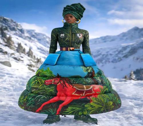 Jean 長期以來致力於通過時裝講述「跨文化敘事」,強調非西方文化在全球時尚體係中的主體性。本次為海地設計的隊服延續這一立場——禮服采用手工繪製圖案,並融入海地藝術家 Edouard Duval-Carrié 的視覺語言。紅色駿馬在藍天與熱帶植被間馳騁,構成一個極具象征意味的畫麵。