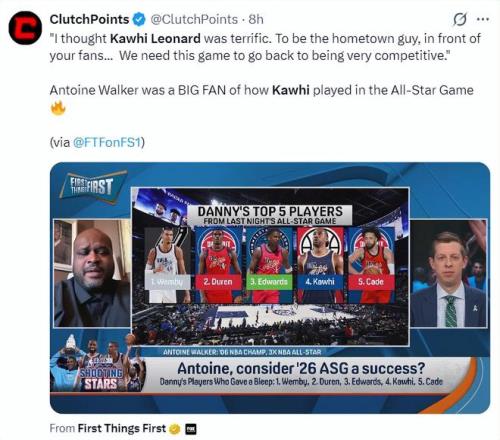 前NBA球員安托萬-沃克談到了小卡的表現:我覺得卡哇伊在全明星的表現非常好,在家鄉父老麵前為球迷貢獻一場精彩的表演,蜜桃网在线观看视频需要全明星重新變得具有競爭性。
