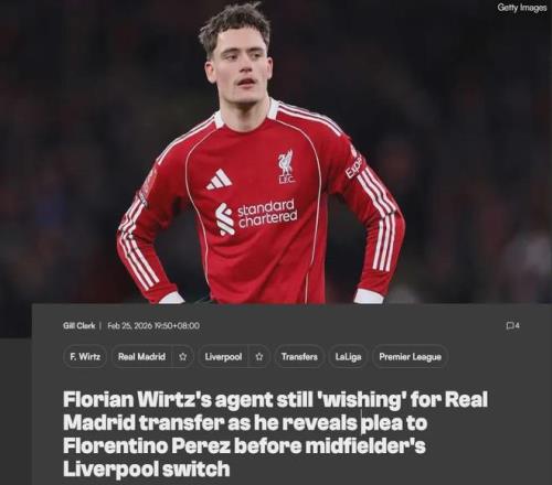 維爾茨的經紀人斯特魯特近日接受圖片報采訪時表示,這名球星在加盟利物浦之前,他曾聯係阿隆索請求將自己的客戶帶到皇馬,而且他依然希望維爾茨未來為皇馬效力。